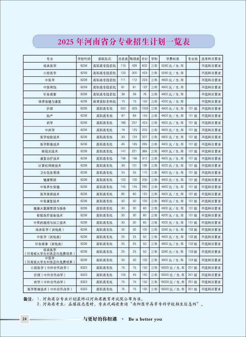 南阳医专2025年普通专科招生简章